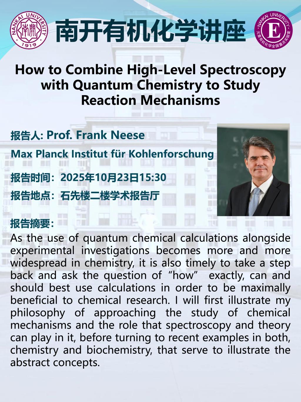 【Nankai University Lectureship on Organic Chemistry】Prof.Frank Neese and Prof. Tobias Ritter