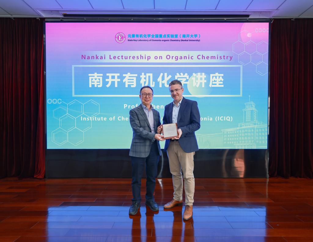 On April 15, at the invitation of the State Key Laboratory of Elemento-Organic Chemistry, Professor Ruben Martin from the Institute of Chemical Research of Catalonia (ICIQ), Spain, delivered an excellent academic lecture entitled “Ni-Catalyzed Functionalization of sp3 C-H Bonds” at the Academic Lecture Hall of Shixian Building as part of the Nankai University Lectureship on Organic Chemistry. The lecture was chaired by Professor Xiaochen Wang of the State Key Laboratory of Elemento-Organic Chemistry and attracted more than 100 faculty members and students from the laboratory and the College of Chemistry, who attended the lecture and participated in discussions.